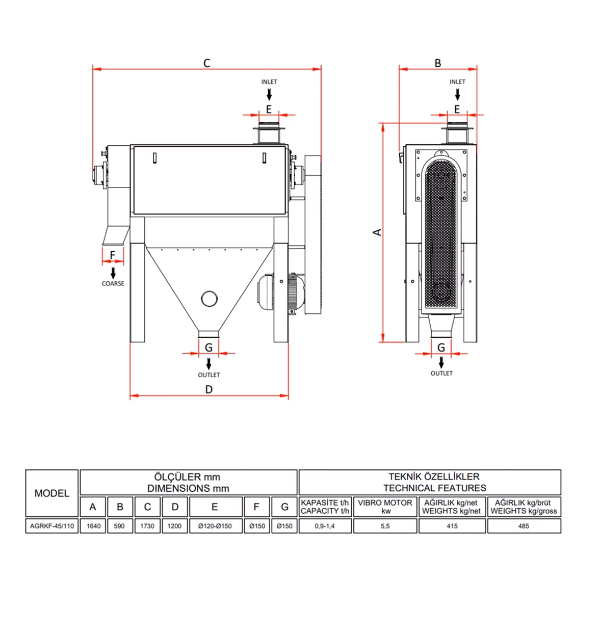An integral part of the flour mill, the bran brush is used in the final milling stage to remove adhering particles from the bran. This machine consists of a perforated stainless steel screen section equipped with a rotor. Separation is achieved through a fast-rotating rotor fitted with inclined blades. The product is thrown against the perforated screen, allowing the flour to pass through the sieve apertures and be directed into a hopper connected to the flour chamber.
