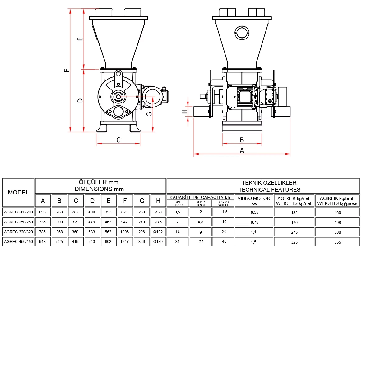 It is used to discharge ground grains, flour, semolina, bran, and waste from silos used for product storage through the vibration generated by the vibro motor. The machine consists of an upper body and a lower swinging section. The conical part inside ensures the product is distributed without being compacted. In addition to flour and semolina mills, it is used in pasta factories, feed mills, and other similar industrial facilities.