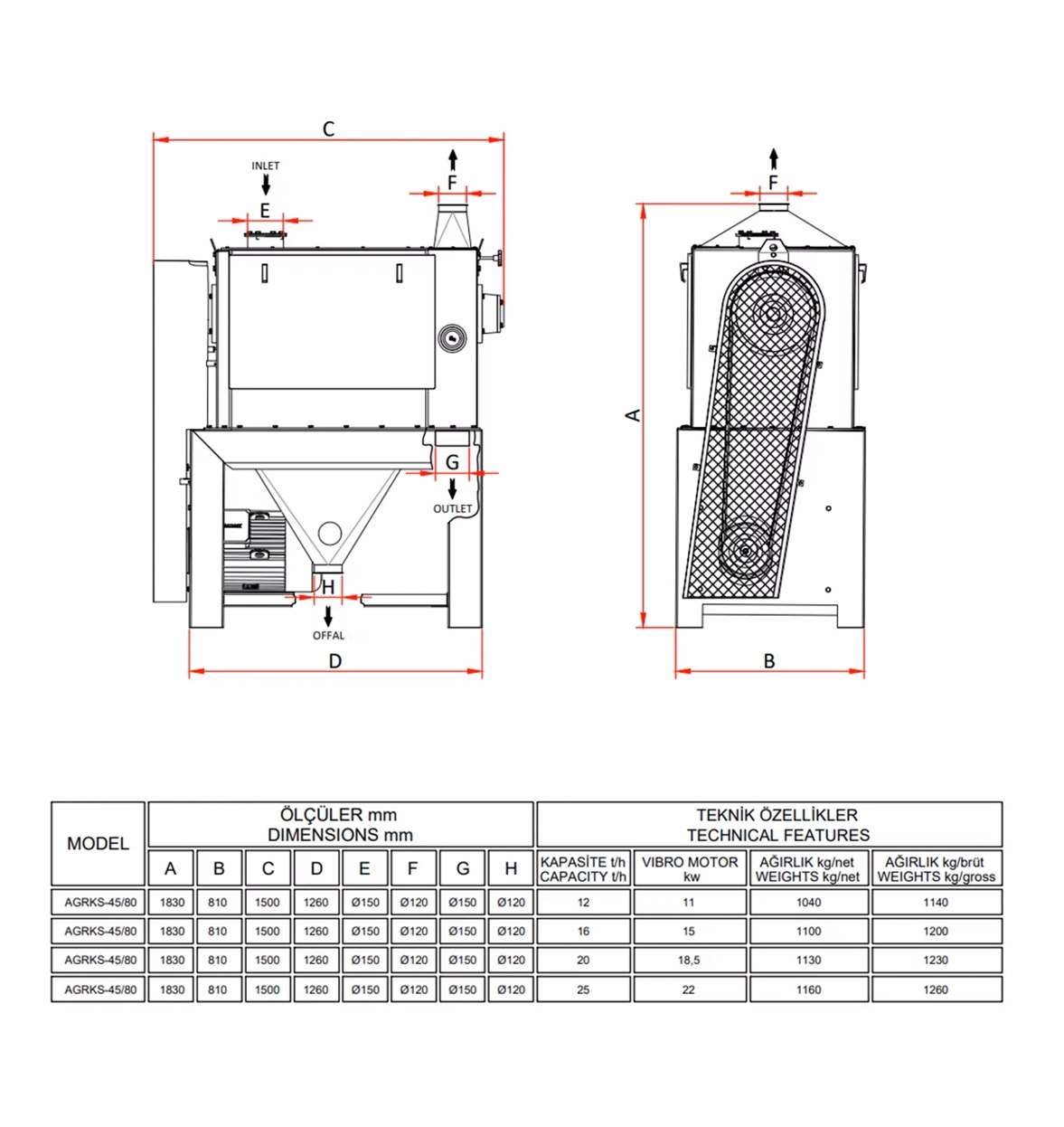 It is used for peeling the husks of wheat, barley, rye, and similar grains, and for cleaning dust, sand, small seeds, husks, insects, and foreign materials attached to these grains. It is used in flour and semolina mills, wheat, rye, barley, corn, and similar grain cleaning plants, silo facilities, etc., in the food industry.
