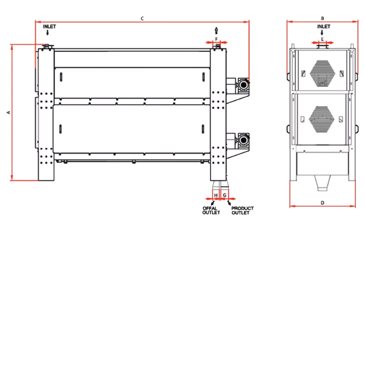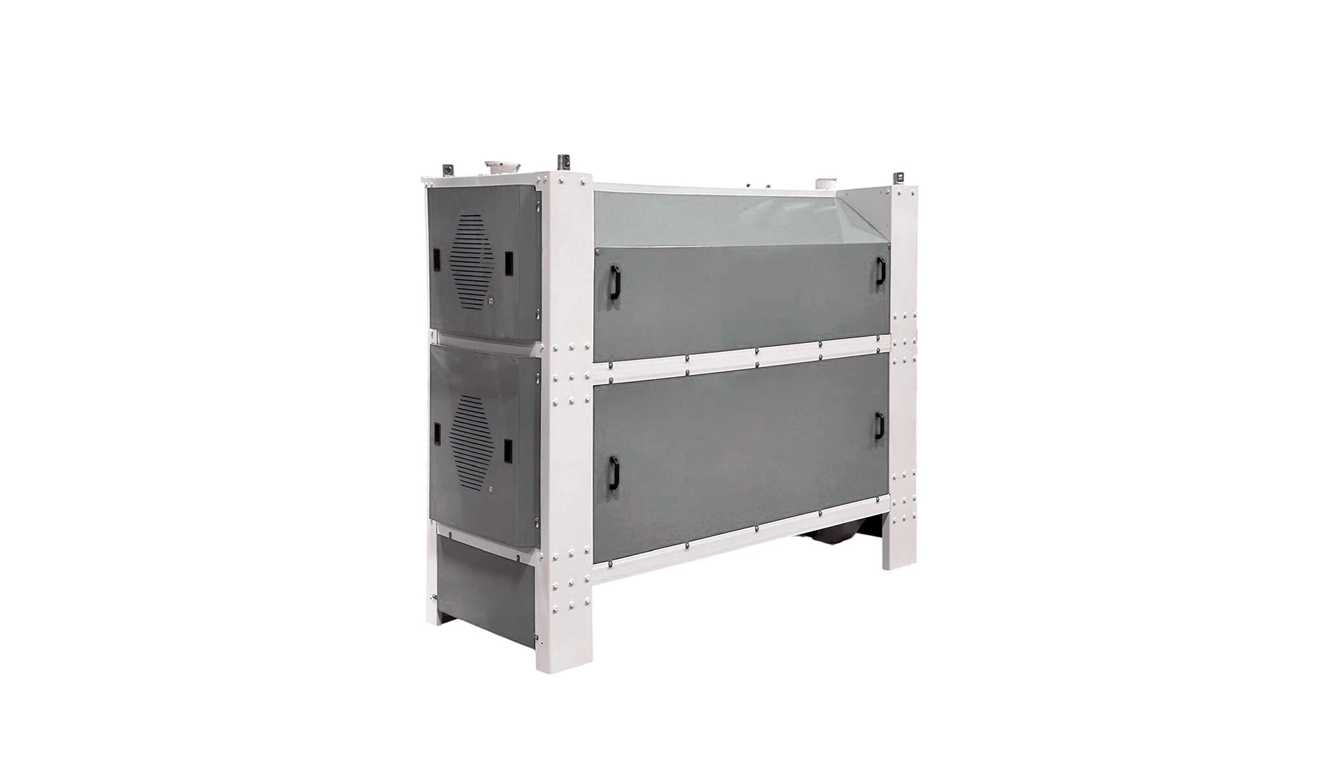 It is a robustly built, long-lasting cleaner used for the displacement of long pieces and smaller, round particles in grains, along with broken kernels. The machine uses a cylinder with pockets that rotates, sifting out the unwanted particles from the kernels. During the rotation in the machine, which is equipped with a pocketed cylinder suitable for processing corn flakes, unwanted particles and broken kernels in the grain are collected in the cylinder pockets. Once these particles reach a certain height, they fall into the spiral and are then conveyed to the waste line by the spiral screw. The remaining particles in the cylinder are transported to the product discharge line at the end of the cylinder through the rotary motion of inclined cylinders or a combination of a roller spiral at the bottom of the inclined cylinders and the rotary motion.
